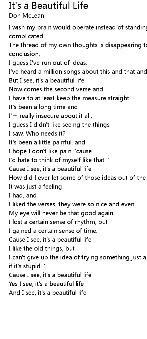 It's a Beautiful Life Lyrics