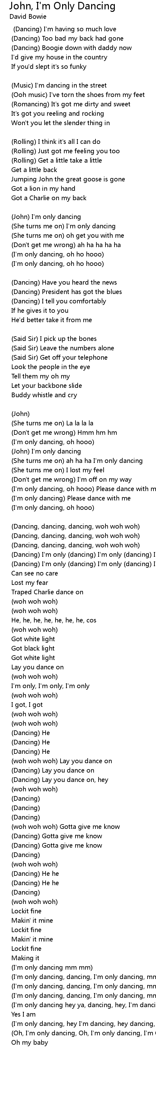 (Oh, I'm only dancing, Oh, I'm only dancing, I'm Only dancing mm mm) |