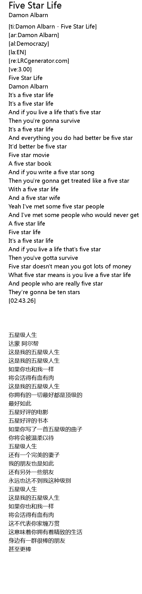 [ti:Damon Albarn - Five Star Life] |