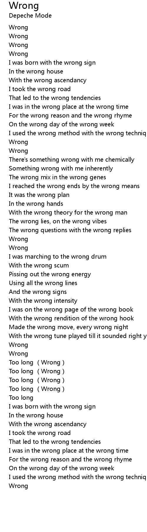 | Song | Wrong |