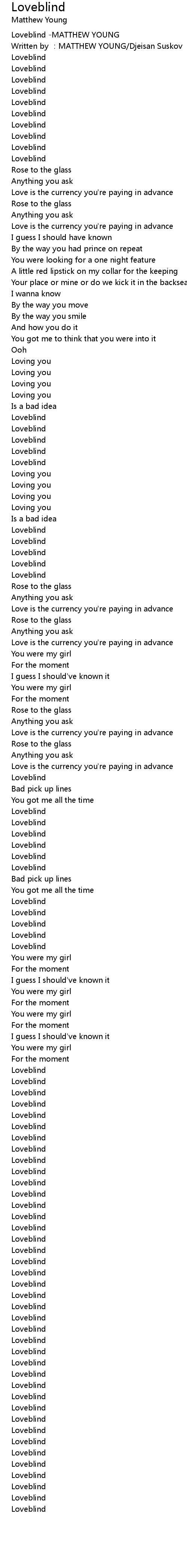 | [00:00.563] | Loveblind -MATTHEW YOUNG |