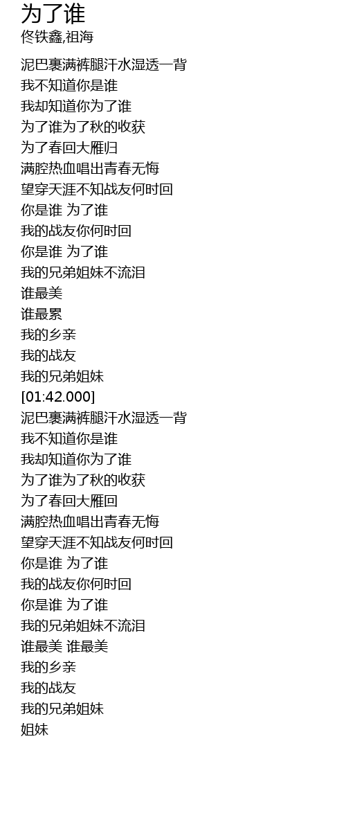| [02:55.570] | 你是谁 为了谁 |