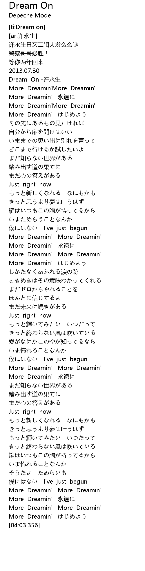 | [03:57.254] | More Dreamin' yong yuan |