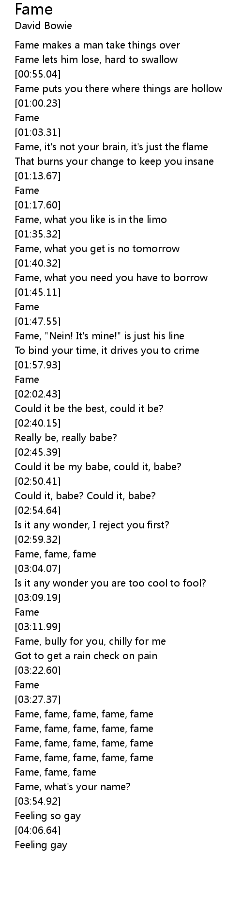 Fame, fame, fame, fame, fame |