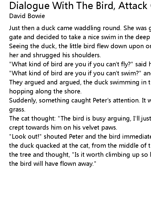 Dialogue With The Bird, Attack Of The Cat Lyrics