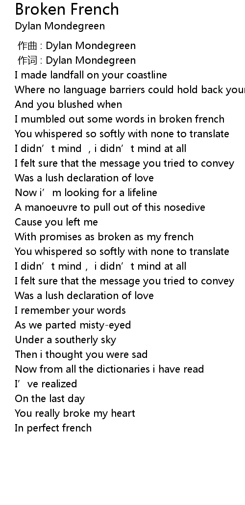 | [00:01.00] | zuò cí : Dylan Mondegreen |
