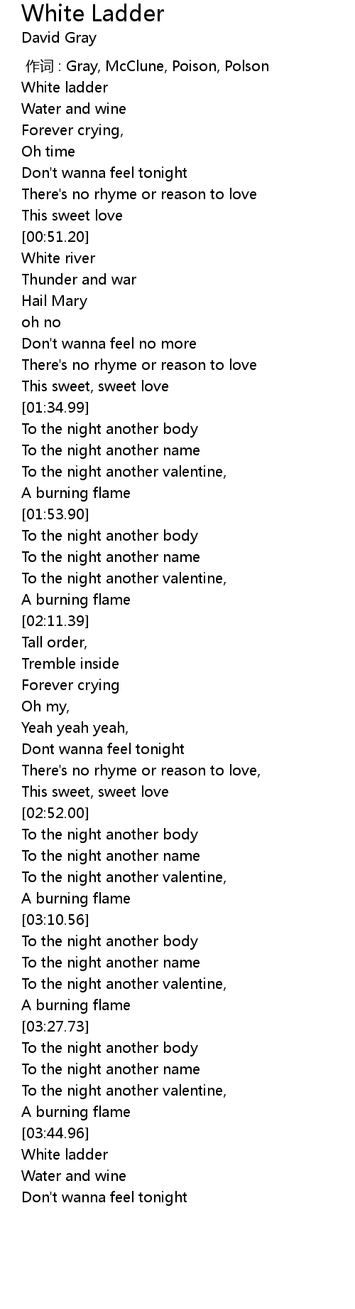 | [00:00.00] | 作词 : Gray, McClune, Poison, Polson |