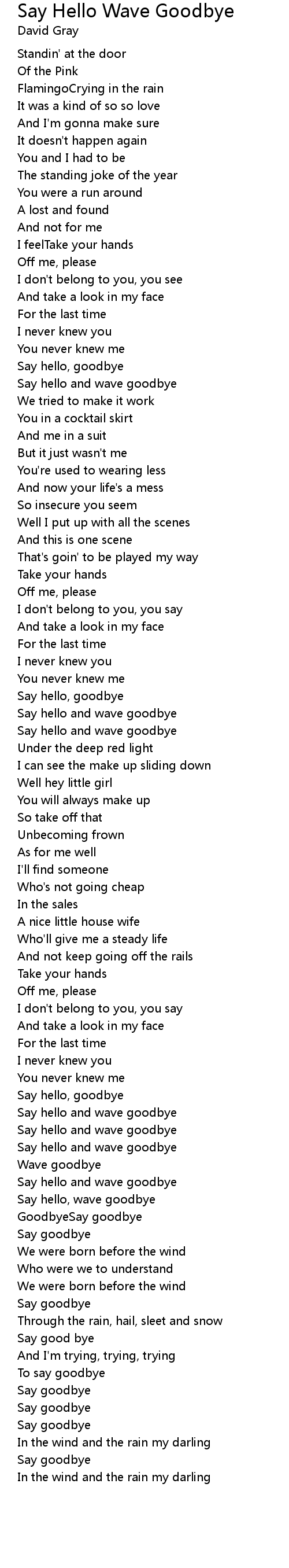 Say Hello Wave Goodbye Lyrics