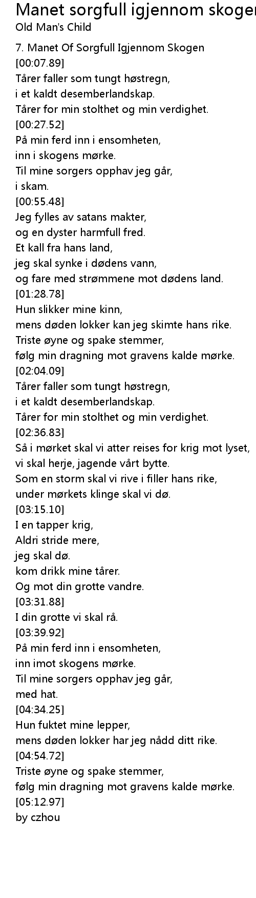 | [00:00.00] | 7. Manet Of Sorgfull Igjennom Skogen |