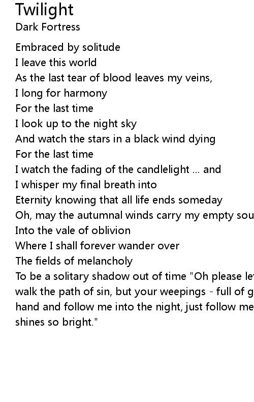 To be a solitary shadow out of time "Oh please let me long for silence, let me walk the path of sin, but your weepings - full of grievance. Oh, please take my hand and follow me into the night, just follow me to a place, where darkness shines so bright." |