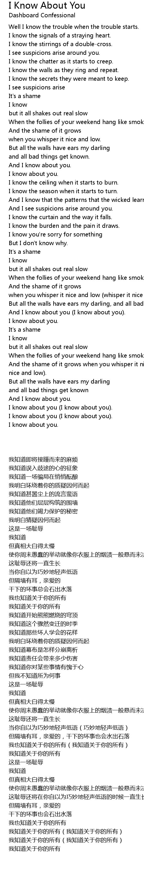 I Know About You Lyrics