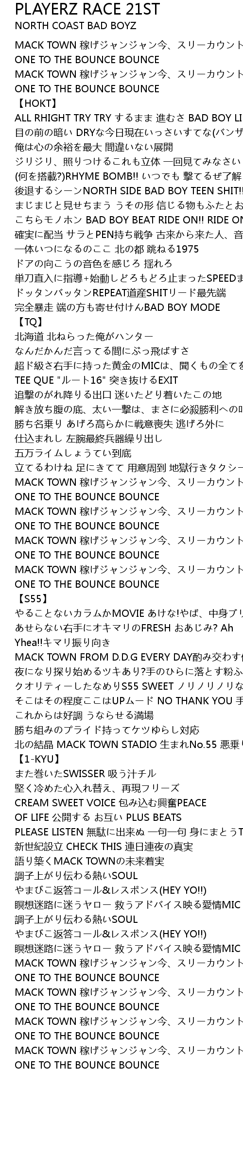 | PLEASE LISTEN 無駄に出来ぬ 一句一句 身にまとうTECH-NIC | |