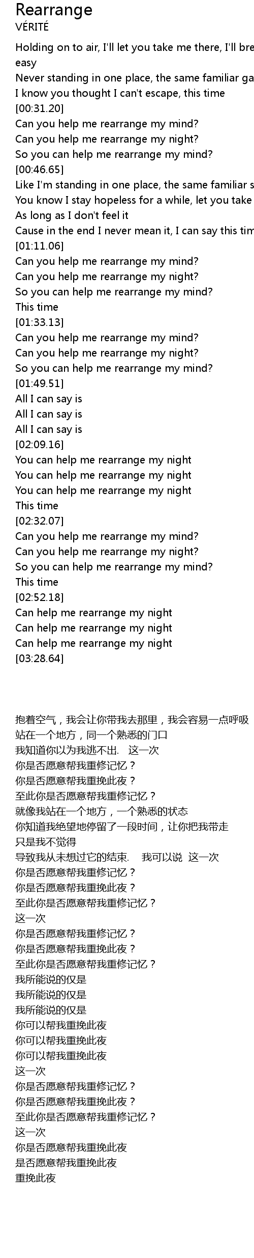 | [01:34.21] | Can you help me rearrange my mind? |
