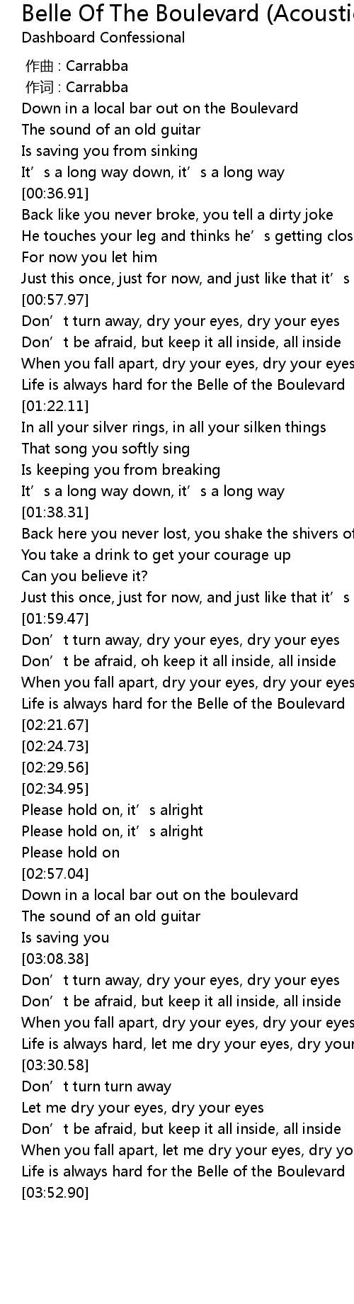 | [03:46.50] | Life is always hard for the Belle of the Boulevard |