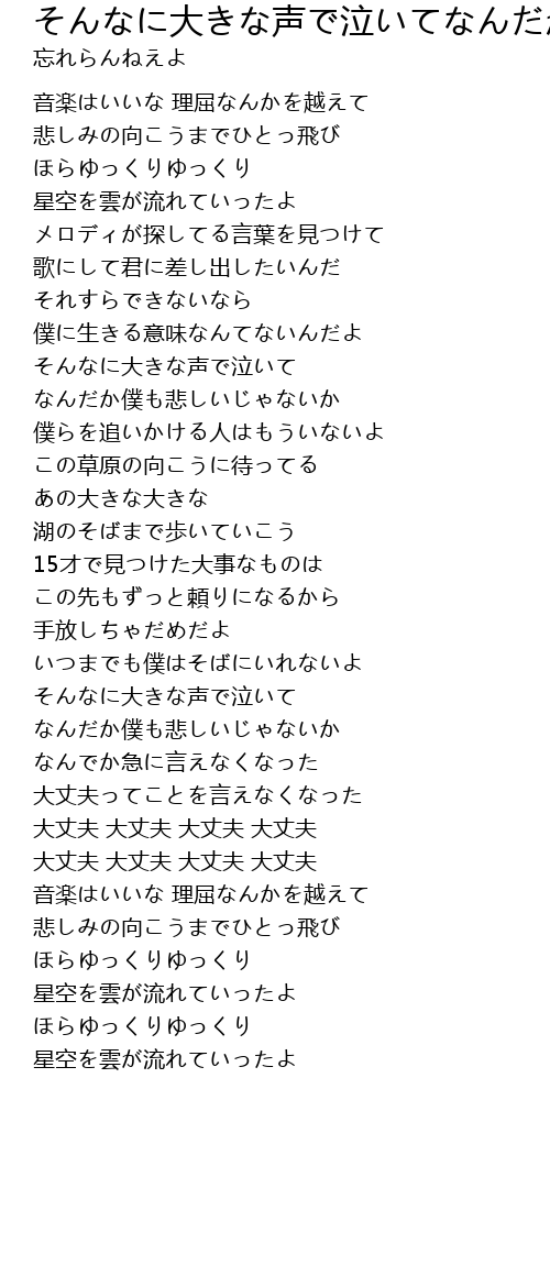 | Song | そんなに大きな声で泣いてなんだか僕も悲しいじゃないか |