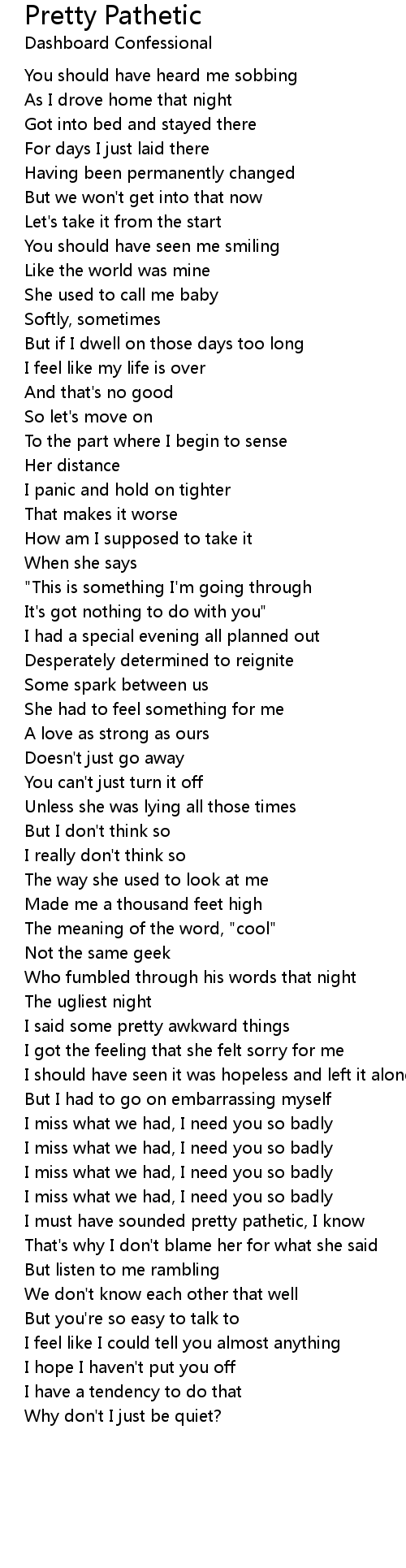 I must have sounded pretty pathetic, I know |