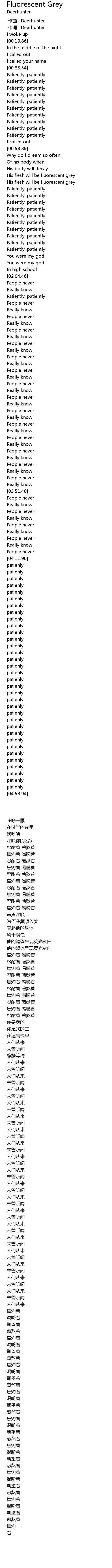 | [00:01.00] | 作词 : Deerhunter |