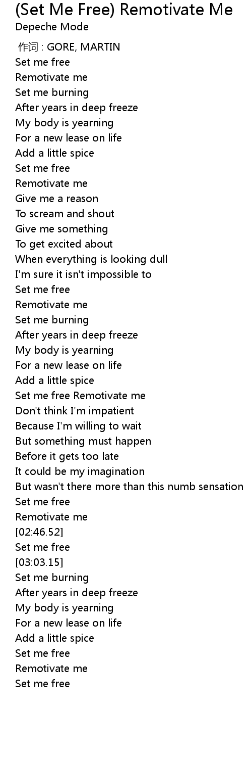 | [01:55.61] | Set me free Remotivate me |