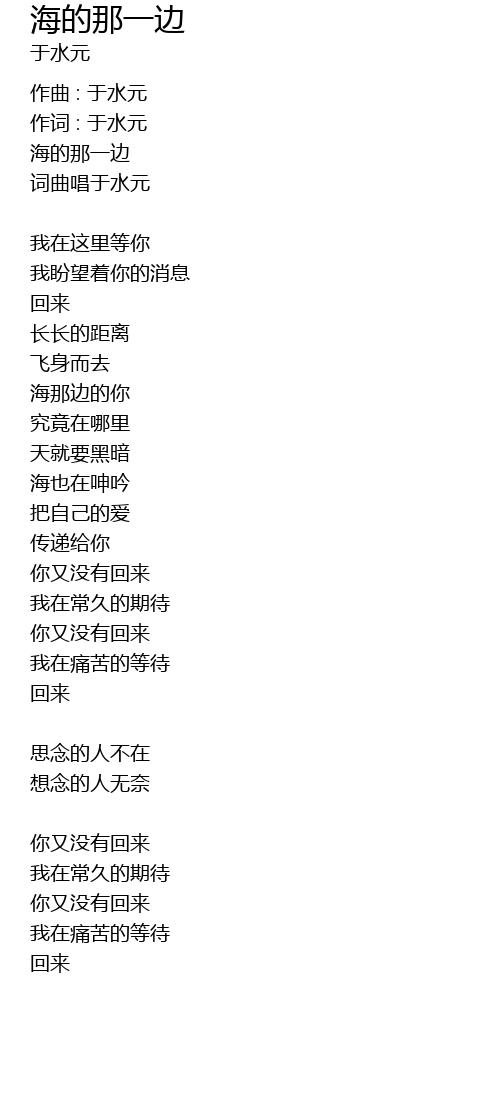 | 作词 : 于水元 | |
