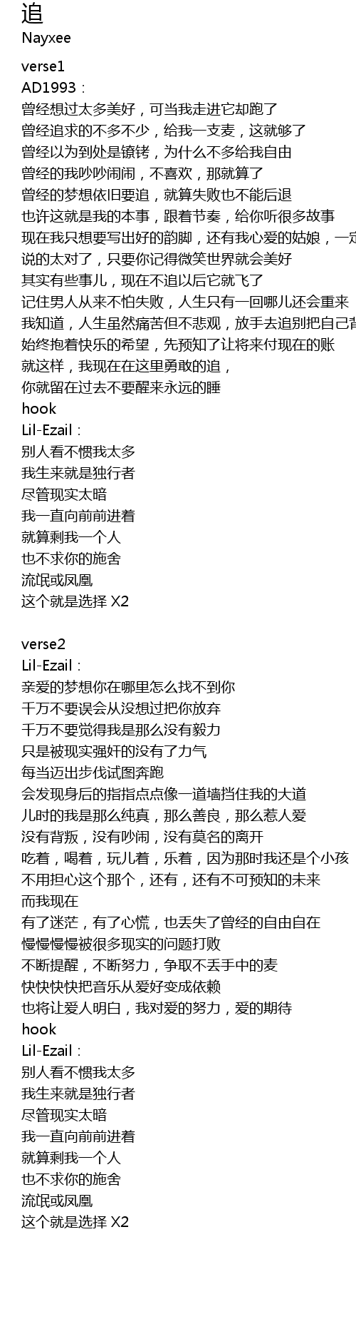 | 现在我只想要写出好的韵脚,还有我心爱的姑娘,一定要把她追到 | |