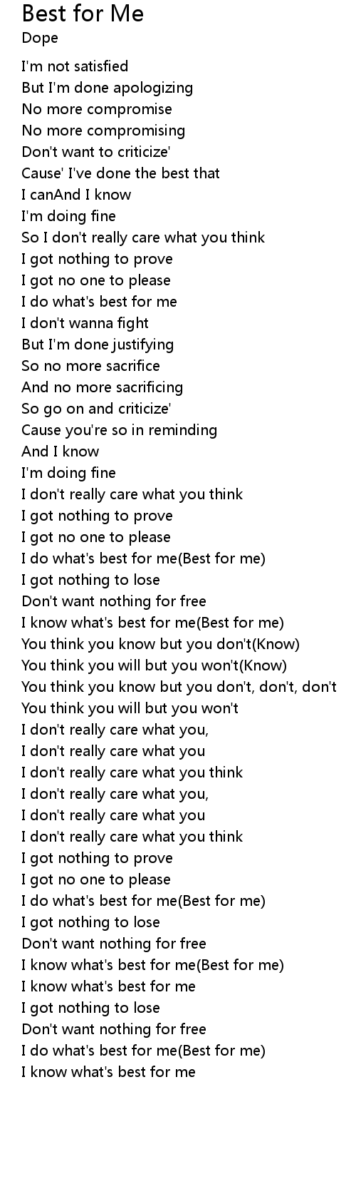 I do what's best for me(Best for me) |