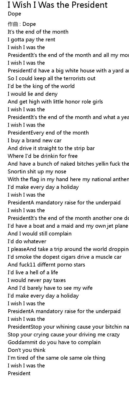 | PresidentStop your whining cause your bitchin naggings killing me | |