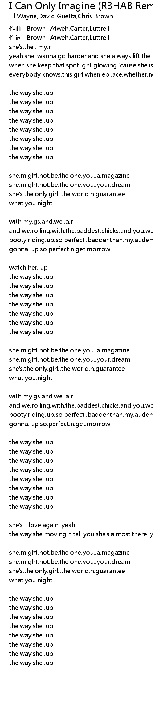 | 作词 : Brown+Atweh,Carter,Luttrell | |