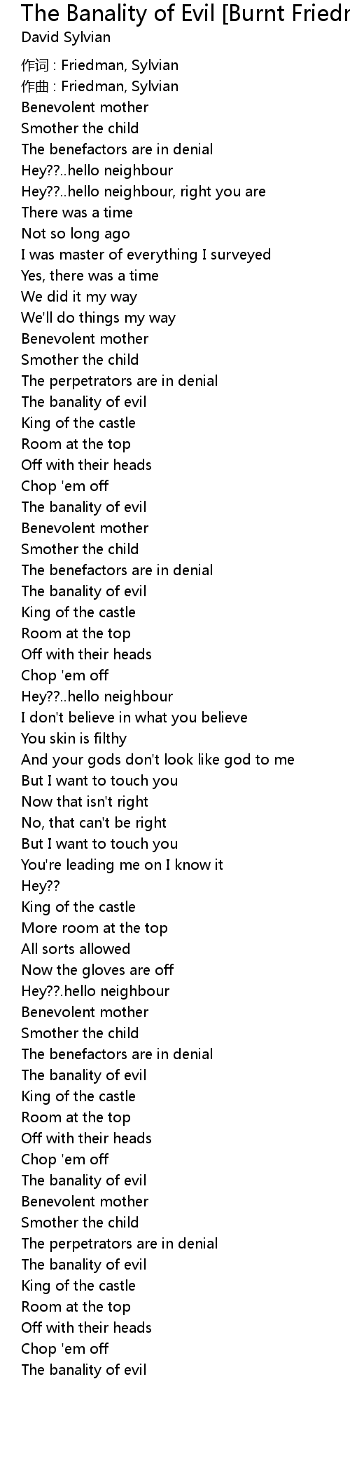 | Song | The Banality of Evil [Burnt Friedman Remix] |
