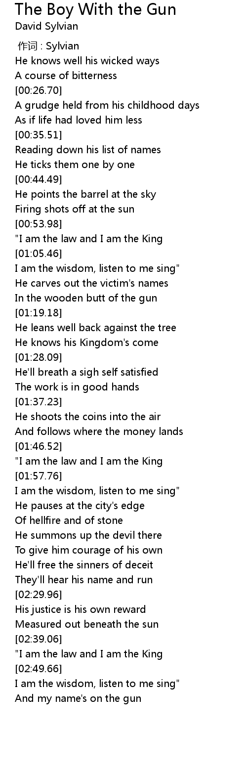 | [02:43.44] | "I am the law and I am the King |
