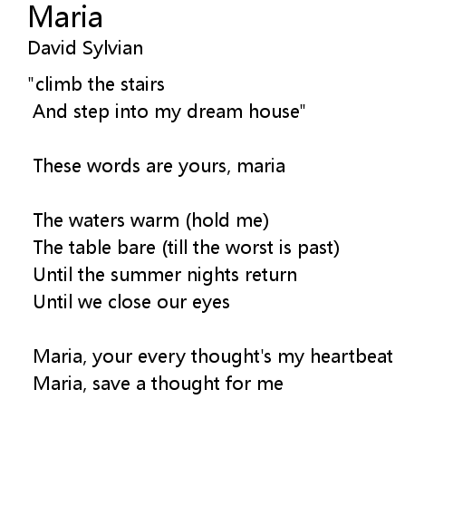 | Maria, save a thought for me |