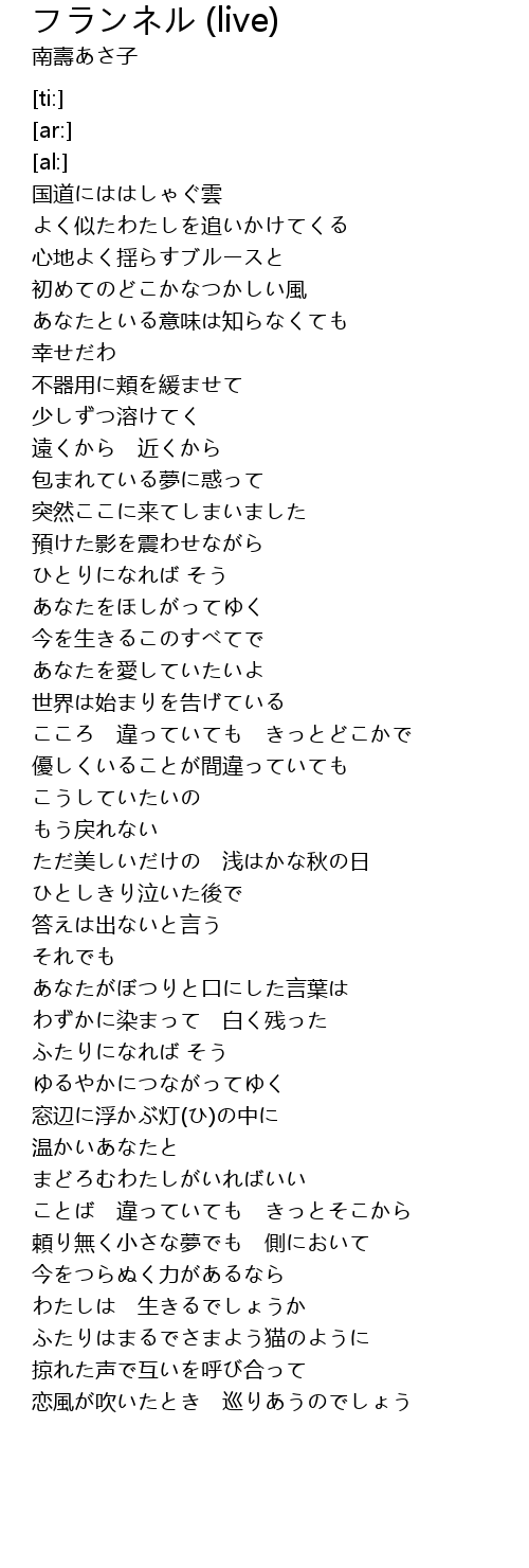 | [03:23.54] | ことば 違っていても きっとそこから |