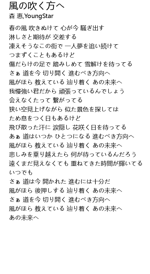 | 風がほら 後押しする 辿り着く あの未来へ | |
