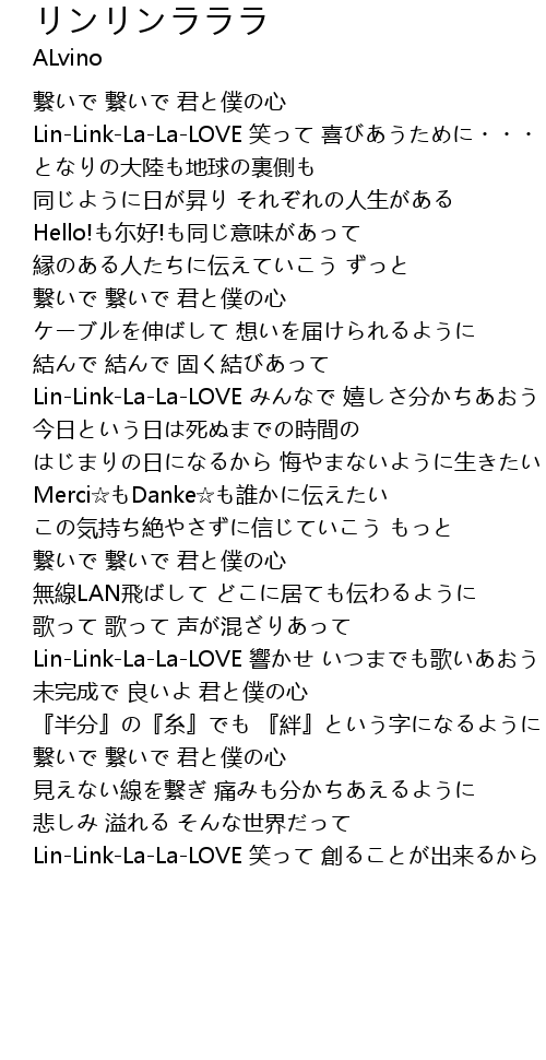 | Lin-Link-La-La-LOVE みんなで 嬉しさ分かちあおう | |