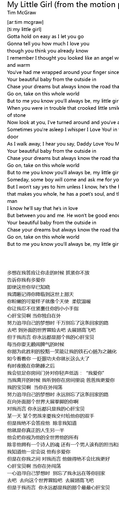 My Little Girl (from the motion picture My Friend Flicka) Lyrics