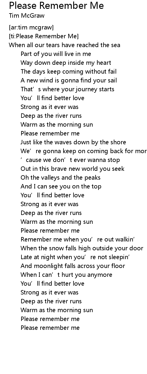 | [02:26.78] | Remember me when you’re out walkin’ |
