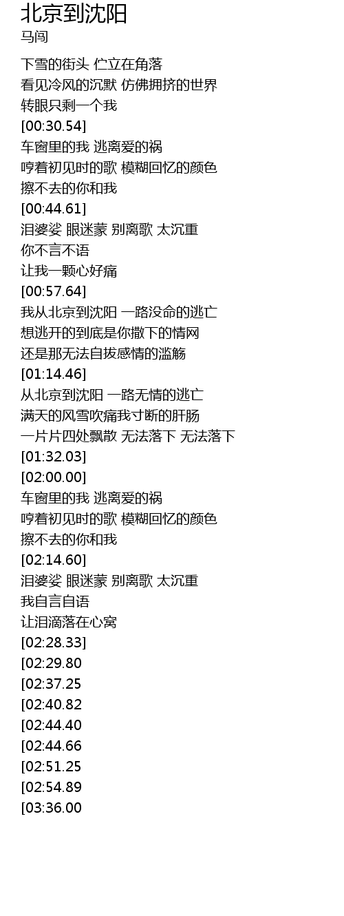 [03:03.63][02:29.80] 我从北京到沈阳 一路没命的逃亡