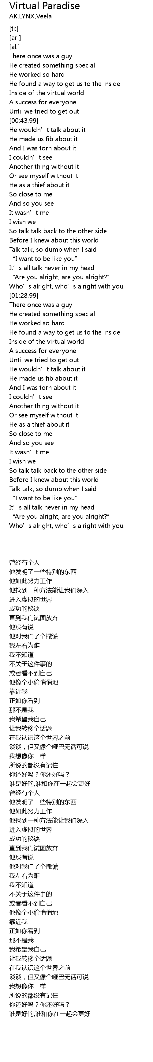 | [02:03.56] | Inside of the virtual world |