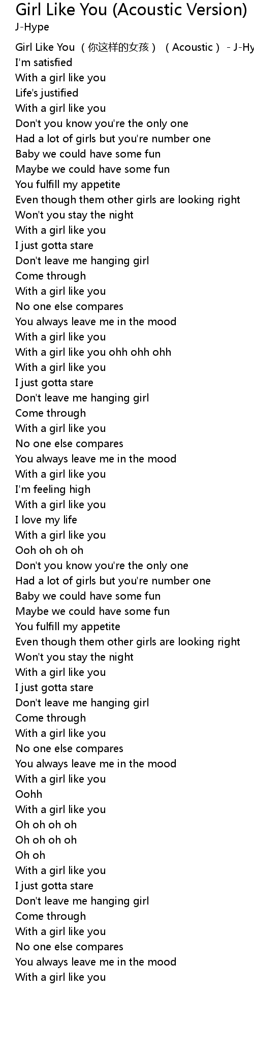 | [00:00.184] | Girl Like You nǐ zhè yàng de nǚ hái Acoustic JHype |