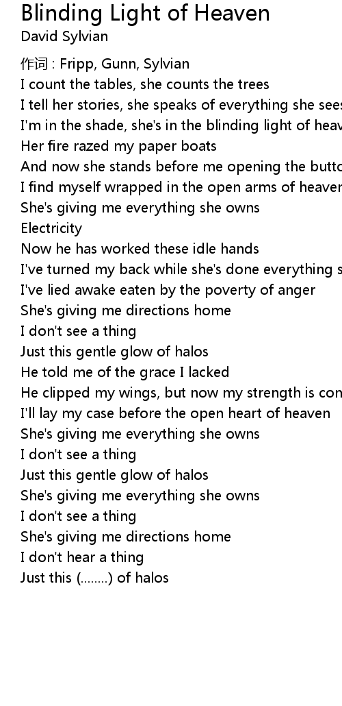 | 作词 : Fripp, Gunn, Sylvian | |