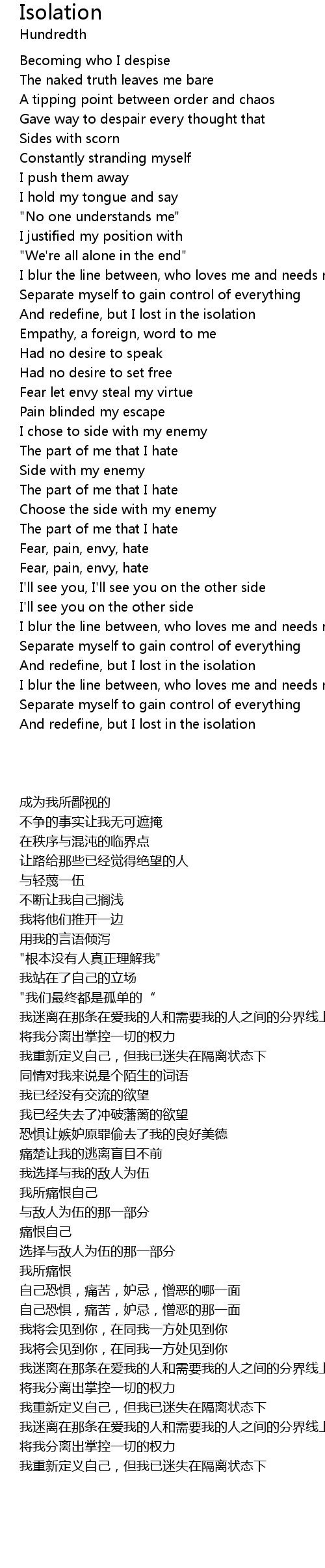 | [02:34.30] | And redefine, but I lost in the isolation |
