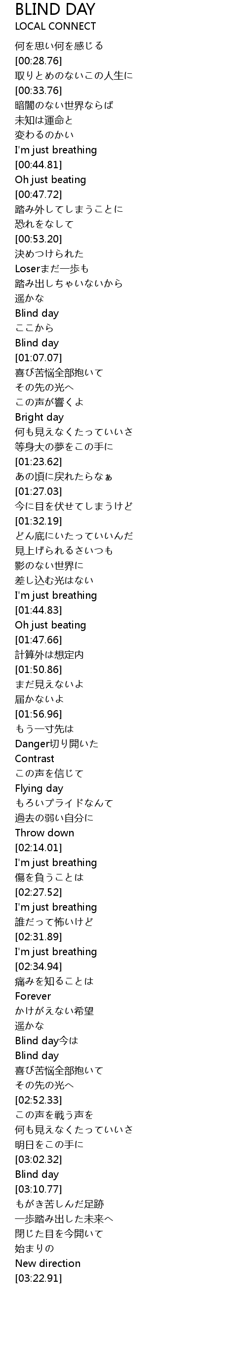 | [02:43.27] | Blind day今は |