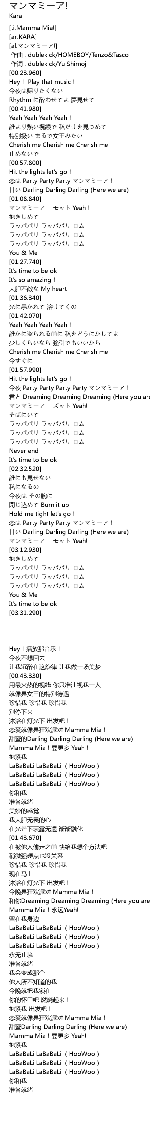 | [02:09.230] | マンマミーア! ズット Yeah! |
