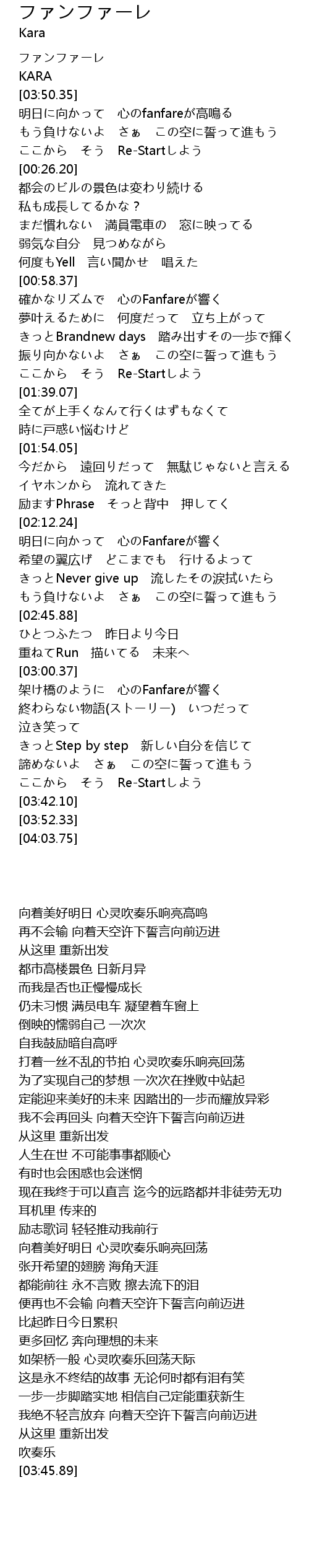 | [02:13.11] | 明日に向かって 心のFanfareが響く |