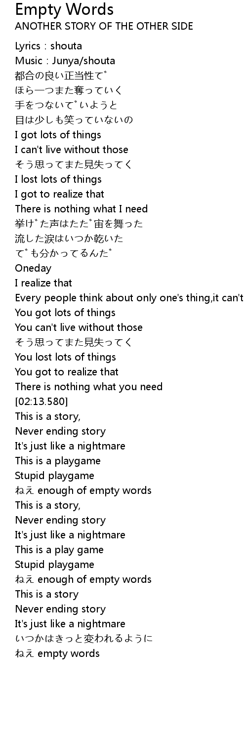 | [01:09.051] | 挙げた声はただ宙を舞った |