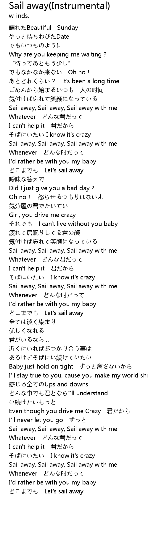 | [01:41.65] | Sail away, Sail away, Sail away with me |