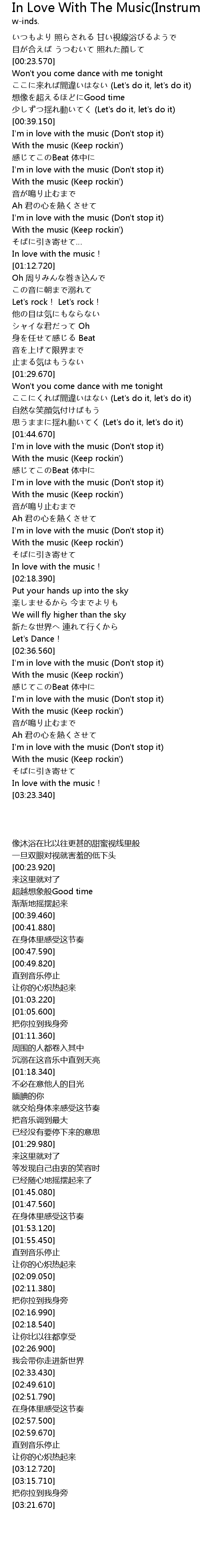 | [02:57.500] | I'm in love with the music (Don't stop it) |