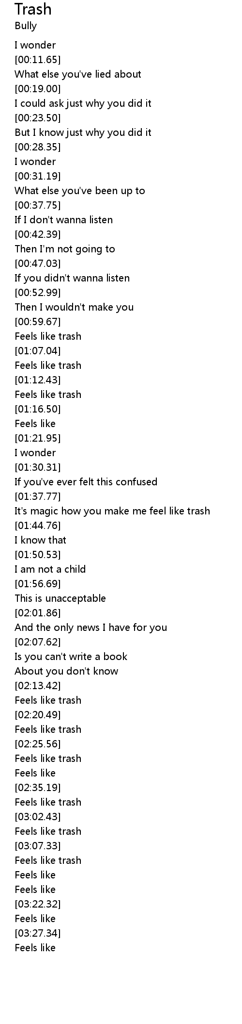 [03:03.56] Feels like trash