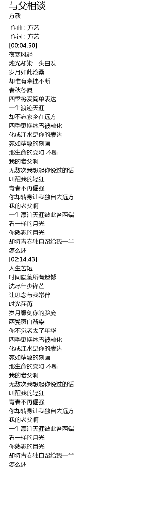 | [03:54.26] | 我的老父啊 |
