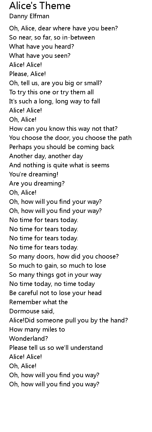Oh, Alice, dear where have you been? |