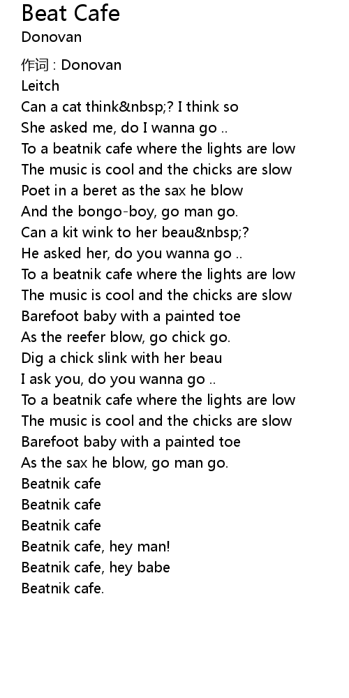 | Beatnik cafe, hey babe | |
